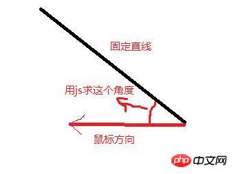1 先获取直线的2各端点和鼠标当前相对于直线所在容器的坐标值2 设直线的2各个端点的坐标PS(x1,y1) PE(x2,y2)3.当前鼠标点位置M(x3,y3)4.直线的结束点(题目中的右下方点)设为坐标原点(0,0)5.直线点的坐标转成PS(x1-x2,(y1-y2)*-1) PE(0,0)6.鼠标点位置M(x3-x2,(y3-y2)*-1)4.求出直线和水平线的夹角PA=Math.atan2(PE.y-PS.y,PE.x-PS.x)*180/Math.PI;5.求出鼠标点和PE点之间的直线和水平线之间的夹角MA6.PA-MA的差就是你期望的角度