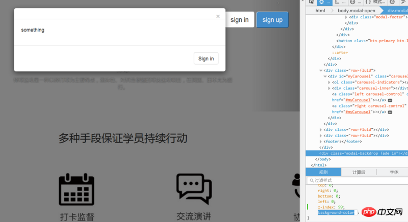 如下图所示,我的modal的z-index为1040,两个button为10,灰色层默认为1030,但是我的modal对话框显示不出来,我就调整了灰色层的z-index。为灰色为100时,显示不出来,灰色为99时,modal和button都显示出来了……请问是什么问题?