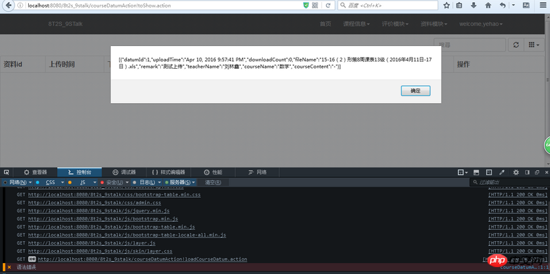 如图已经拿到了请求的数据,但是没能在表格中显示出来,控制台有错误说语法错误,但是没找到原因。。