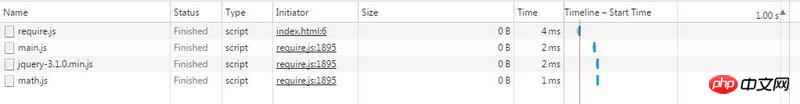 main.js模块依赖了jquery模块和math模块,由于异步我视为开了两个线程;第二个math线程又依赖了jquery模块,为何没有再一次请求该资源?requireJS内部机制是怎样的?