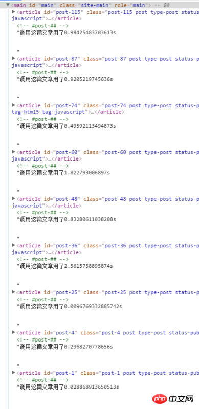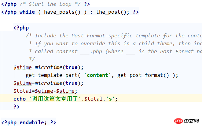 我在wordpress模板的index.php的php程序生成文章列表的地方执行了一次这个代码,来测试下执行时间: