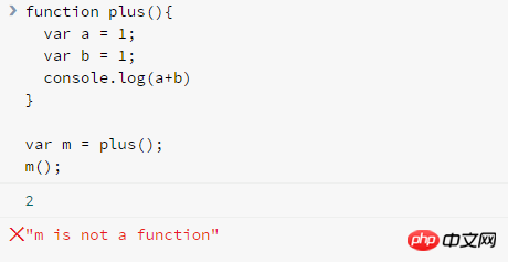 var m = plus(),plus 函数会直接执行,但是你 plus 函数没有返回值,所有 m = underfined,所有 m() 会报错;对于第二个,