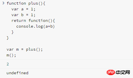 var m = plus();m等于plus函数执行后的返回值 为一个function 函数体为console.log一个数字
