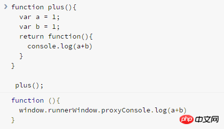 函数plus有返回值, 是一个方法; 则当你调用plus的时候(plus())则输出他的返回方法