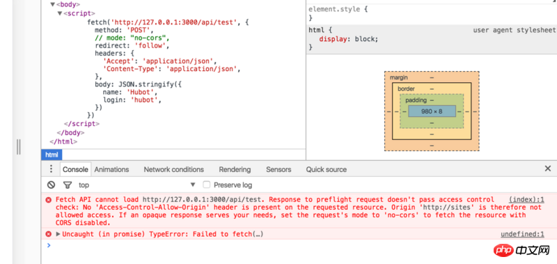 截图在这里,按照console的错误提示添加 mode: "no-cors"后,可以正常发送请求