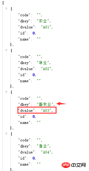 现在 php中想读取json文件内容并按要求查找丛中的item 例如:通过A03 输出 dkey 的值该怎么查找对应输出呢?求教!