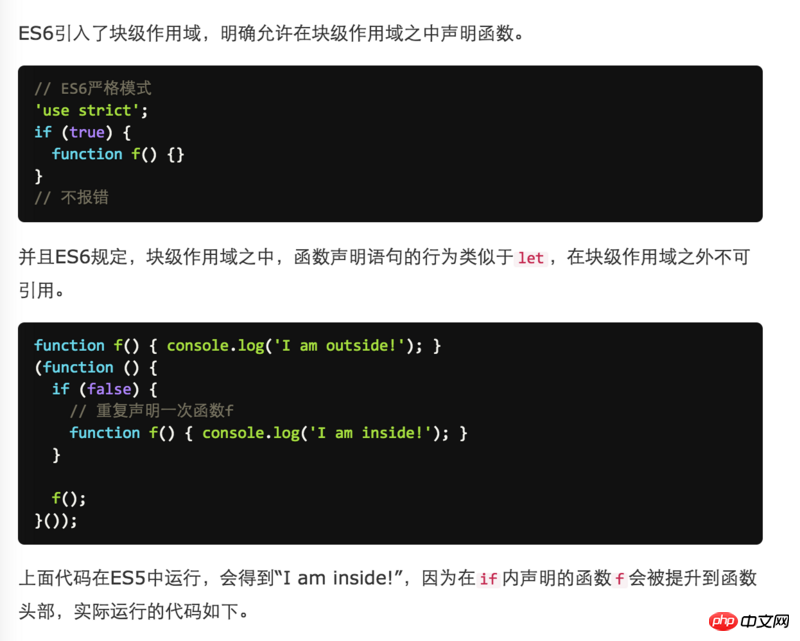 说了是在 ES5 的环境中运行,你可以找个旧的 IE8 之类的,ES 5 里所有作用域是以函数为界,而 function f 这种声明为提前解析,比如你可以写