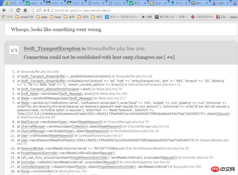 如图所示配置项,发现在Laravel无法发送邮件,但是我试过单独使用网上流行的smtp.class.php类库用同样的参数进行发送是可以发送成功的,这是怎么回事?我能保证我的smtp服务器本身没任何问题,因为我单独写的php脚本里面用其他的smtp类库是可以发送的,唯独Laravel里面发送不出去