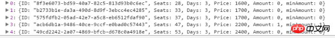 这里的图片中的数据是我从数据库拿出来,是个二维数组,也可以参照实例网站的network中order的传输json查看,此数组是二维数组,php中进行了排序显示,这里数组中的amount表示当前人数下,这类型车辆的数目,以此作为页面显示依据,minamount 应该是辅助数据。