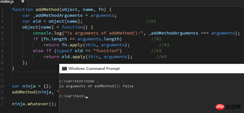 if (fn.length == arguments.length)这个arguments是谁的arugments?调用addMethod时的?还是object[name] = function()这个匿名函数?