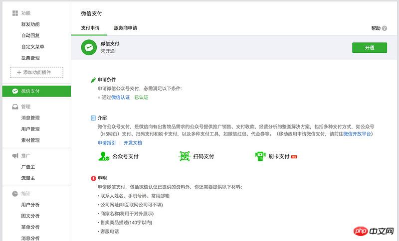 如果是公众号申请微信支付权限,需要微信『服务号』认证之后,申请开通微信支付权限。