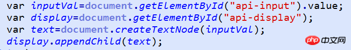 你 var display=document.gentElementById("api-display")多了一个n,而且你要createTextNode去存储inputValue的值,不然会报错。