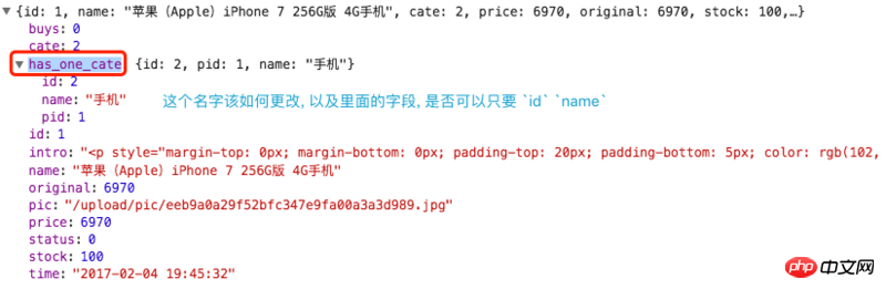 has_one_cate改成cateInfo,没找到直接的方法。一个思路是自己重现拼装数据,或者进一步封装成View Model。首先设计就错了,这显然不是