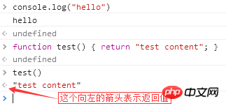 undefined,而是return出来的内容。注意那个向左带点的小箭头,它表示上一个输入的表达式的计算结果