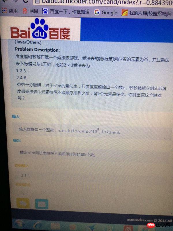 n*m的矩阵结果你是一定需要的。我给你个方法,造一个0-n*m的数组A,每个元素都为0,然后你两个for循环计算出矩阵中的每个数t,将A[t]++,计算完了之后你有一个一维数组可能是这样的【0,1,2,3,1,0,2,5,。。。】你从左往右加,直到到结果大于等于K,此时的下标i就是你要的结果