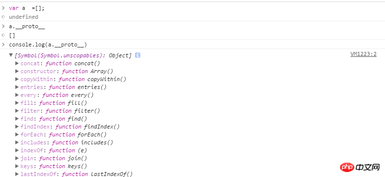浏览器控制台,显示的是上一个表达式的返回值。而对于数组a,浏览器控制台显示的是其 a[0] a[1] .. 这些属性。a["join"] 这样的属性是不显示的。a.__proto__ 本质上是一个数组,因此,不会显示 join 等属性。
