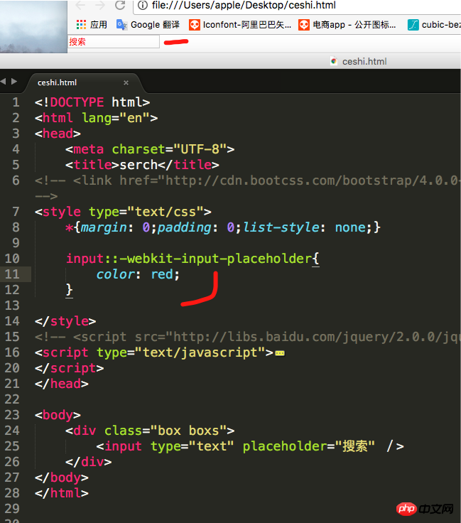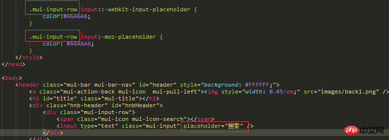 《用mui框架来做webapp,是不是mui框架的原因》搜索框的placeholder="搜索"提示文字的颜色问题:为什么我加前面加父元素才显示颜色(图一),不加就是默认的(图二)
