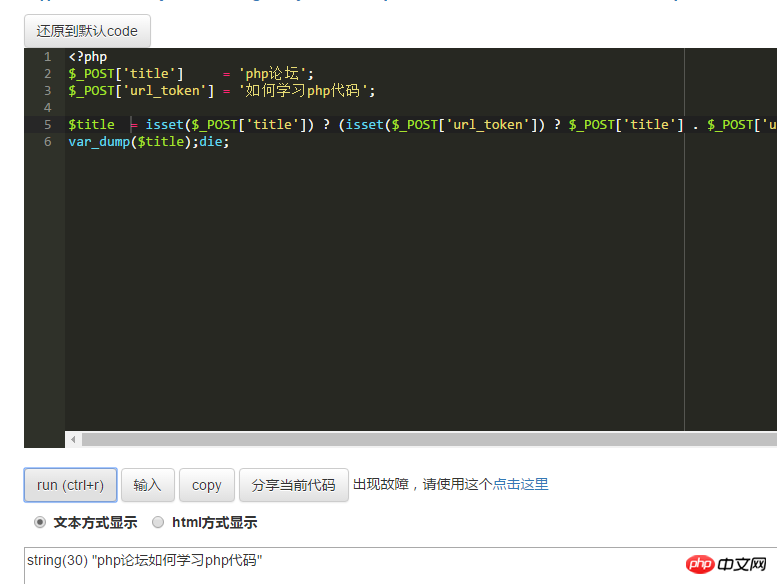 输出:php论坛如何学习php代码