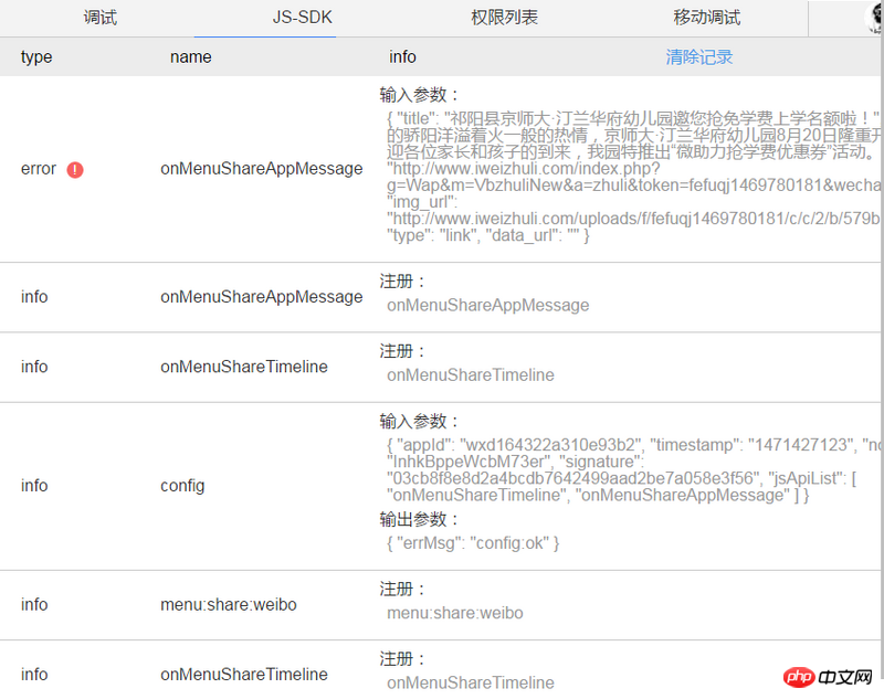 微信分享报错如图所示,使用debug=true没有找到错误原因,求各位大神提供一下解决思路