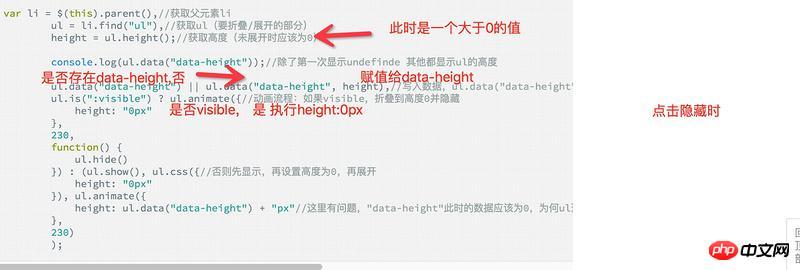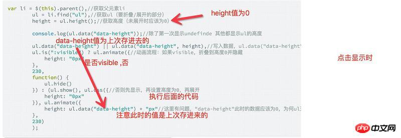 ul.data("data-height") || ul.data("data-height", height)这个,当第一次点击时,ul是有高度的。这时把ul的height写入到了data-height中。