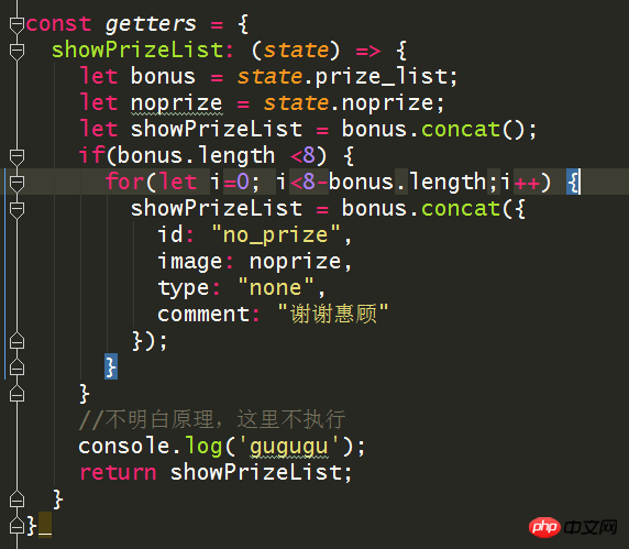 写了一个getters,数据经过了getters的处理是对的,但是不过console.log并没有打印出来,alert也不行,请问这是怎么回事呀