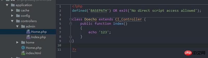 如图,我想访问 controllers/admin/Home.php 中的Doecho类的index方法