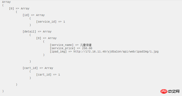 $arr[$k]['service_id'] = $v['id']['service_id']; $arr[$k]['service_name'] = $v['detail'][0]['service_name']; $arr[$k]['service_price'] = $v['detail'][0]['service_price']; $arr[$k]['ipad_img'] = $v['detail'][0]['ipad_img']; $arr[$k]['cart_id'] = $v['cart_id']['cart_id'];