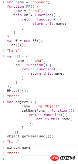 在第一个FF函数中变成haha的 之后的this均为window对象