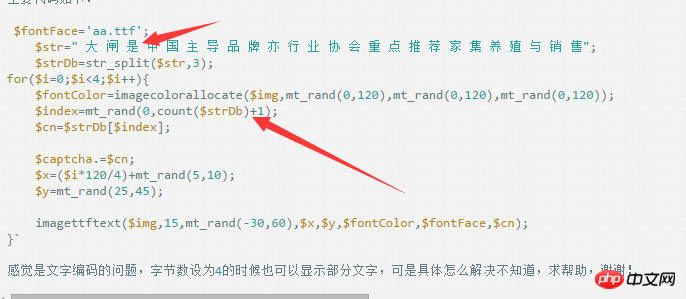 在做一个php中文验证码时,按原本的思路是将一段文字分割成一个个文字组成个文字数组,然后遍历四次,随机生成四个验证文字,然后画在image上,可是发现用`str_split($str,3)`来分割有时会少一个文字,换成`explode(" ",$str)`还是偶尔缺字。。。