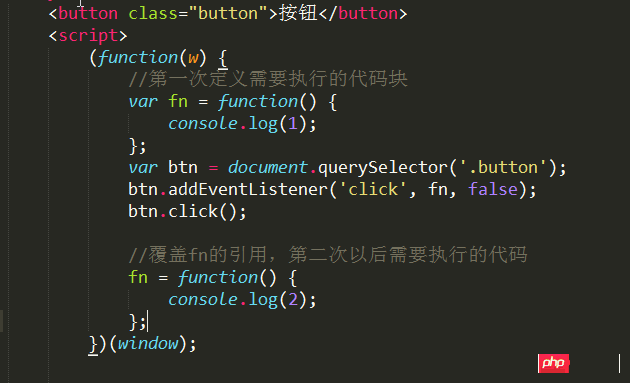 console.log(2)的fn就被留在执行环境了,后来每次click就直接调用执行环境中的fn了。