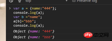 var a = {name:"444"}; console.log(a); var b ="name"; a[b]="bbb"; console.log(a);
