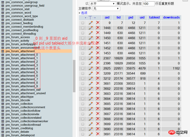 pre_forum_attachment_0 到 pre_forum_attachment_9 里面的 aid tid pid uid 还有tableid 在 pre_forum_attachment 部分缺失(后上传的附件可以下载,以前上传的不能下载)