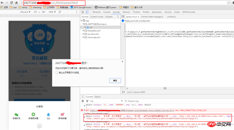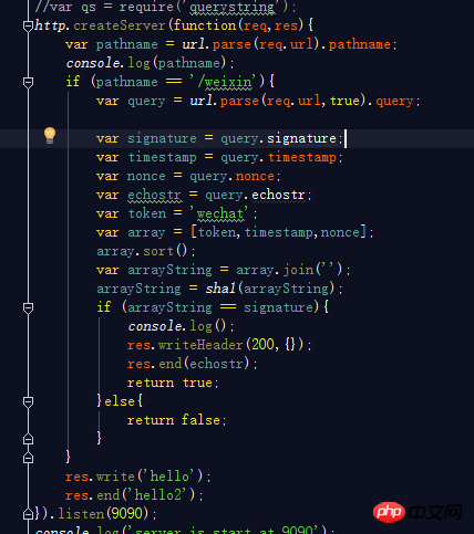下面是我的nodejs接入微信的代码;(我是用花生壳将本地127.0.0.1:9090 映射出http外网地址的)