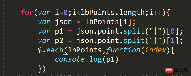 不明白你为什么外边遍历了lbPoints,里面又用$.each()遍历,但是这样是可以拿到p1,p2的