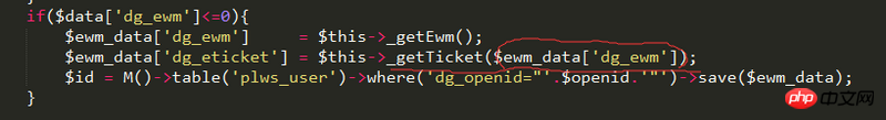 图1调用 _getTicket()方法请问图3 _getTicket()方法传的参数是 $ewm,还是$ewm_data['dg_ewm']??? 为啥请说明原因?