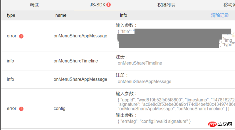 除了这个错误,我调用的分享也在报错,分享后title和imgUrl都无效,估计都是因为签名报的错,希望大神帮忙解决一下~