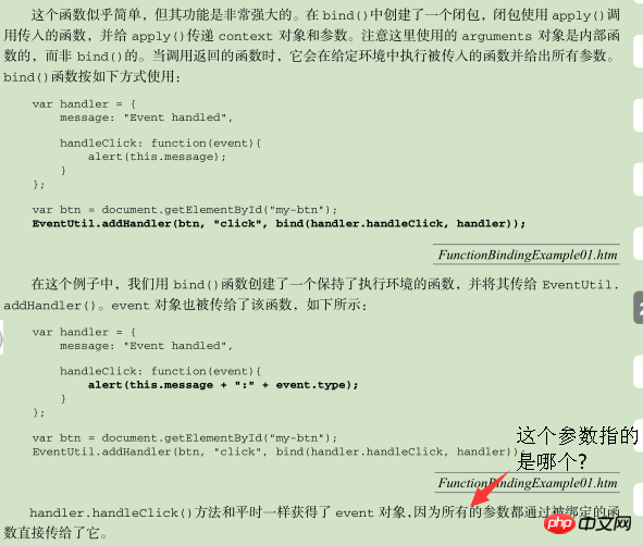 不明白为什么能获得event对象?为什么所有的参数(这里指的function的参数吧?那function的参数是什么?是event对象的吗?)都通过被绑定的函数直接传给它?