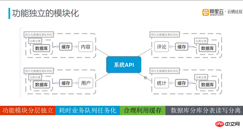 比如SegmengtFault官网,好多模块,比如文章、问题、笔记、头条等,每个都设计成独立项目独立域名不要用模块来分离,这样可以做到前期单独部署在单台服务器,后期根据模块负载拆分部署,分离出来的还可以进一步负载均衡啥的方便所谓的横向扩展.
