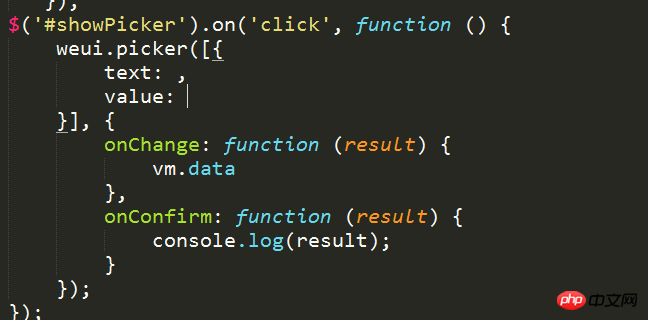 怎么才能把vue.js 里面buyoptions 里面的属性值 放入外面weui.picker 数组里面