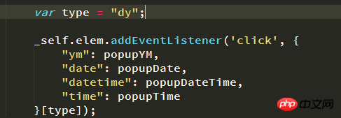 var type = "dy"; var obj = { "ym": popupYM, "date": popupDate, ... }; console.log(obj[type]); _self.elem.addEventListener('click', obj[type]);