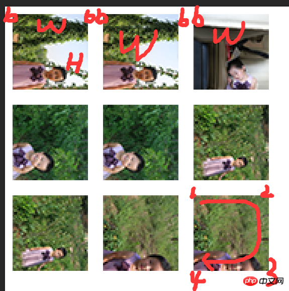 [ [x[0],y[2]] , [x[1],y[2]] , [x[1],y[3]] , [x[0],y[3]] ], //第2行第1张图片 点[0],点[1],点[2],点[3]