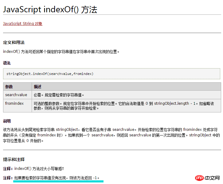 indexOf返回查找字符串所在位置,0是起始位置,-1表示没有找到
