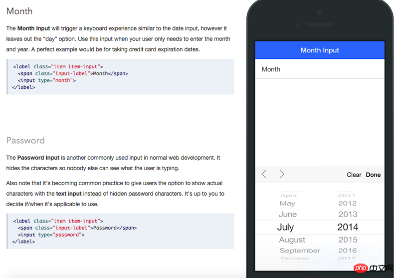 <label class="item item-input"> <span class="input-label">Month</span> <input type="month"> </label>