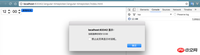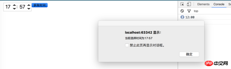 点击获取时间按钮,可以在控制台获取到时间,也有提示框出来