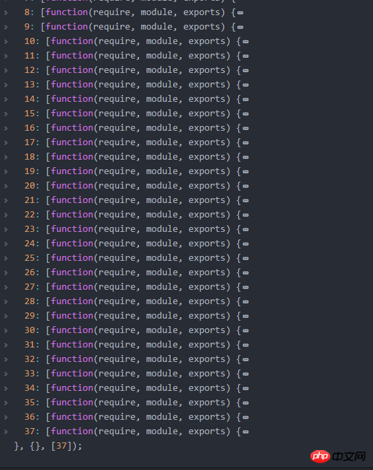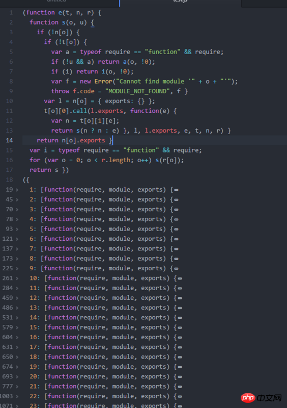 模块化方式很像是requirejs,但仔细一看,在头部有一个简化版的加载器。所有的函数被打包在一个以数字为键的对象中在最后指明了入口文件