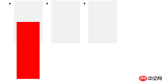 li { width:100px; height:150px; float:left; margin-right:30px; background:#f1f1f1; position:relative; z-index:1; }