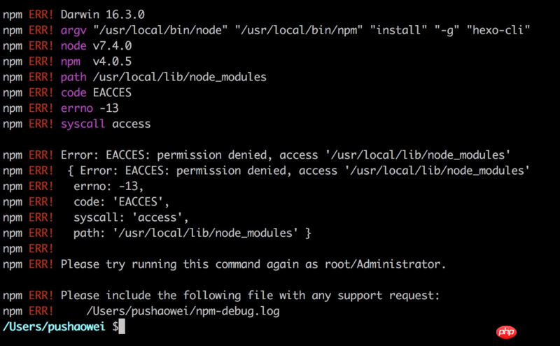 由于你是全局安装,安装位置在权限受限位置,所以需要增加权限。