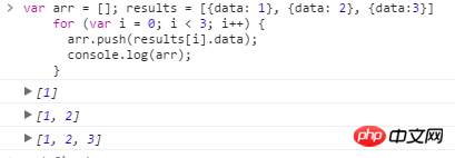 arr是数组,打印时调用的实际是arr的引用,所以每次打印都会相同(同一个引用)。如果想打印你想要的结果,可以先把