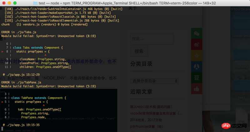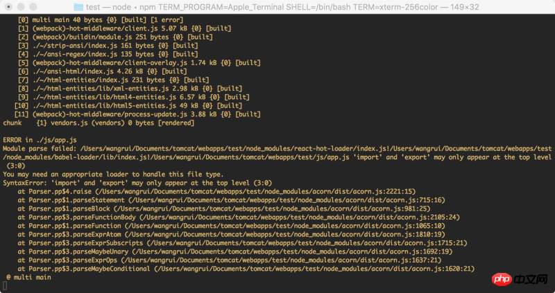 在网上了解了一下说是因为引用es6的语法不能识别,于是我引入了es2016中间件,并将上面babel配置2015改为2016,可是又报其他错误: