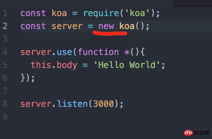 请问一下,在koa官方教程里,一个最简单的hello world是这么写的